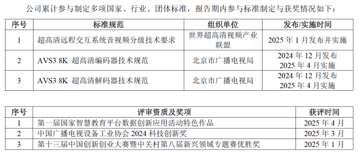 2025年1月,博汇科技参与世界超高清视频产业联盟组织的“超高清远程交互系统音视频分级技术”标准发布并实施。上半年,与北京大学教师教学发展中心达成深度战略合作,实践以“优质教学资源的普惠化与再生产”为引擎的教育教学发展新模式。公司表示,将继续聚焦视听大数据领域,以“AI+”为战略视角,为各行业用户提供定制化解决方案,助力行业智慧化升级。